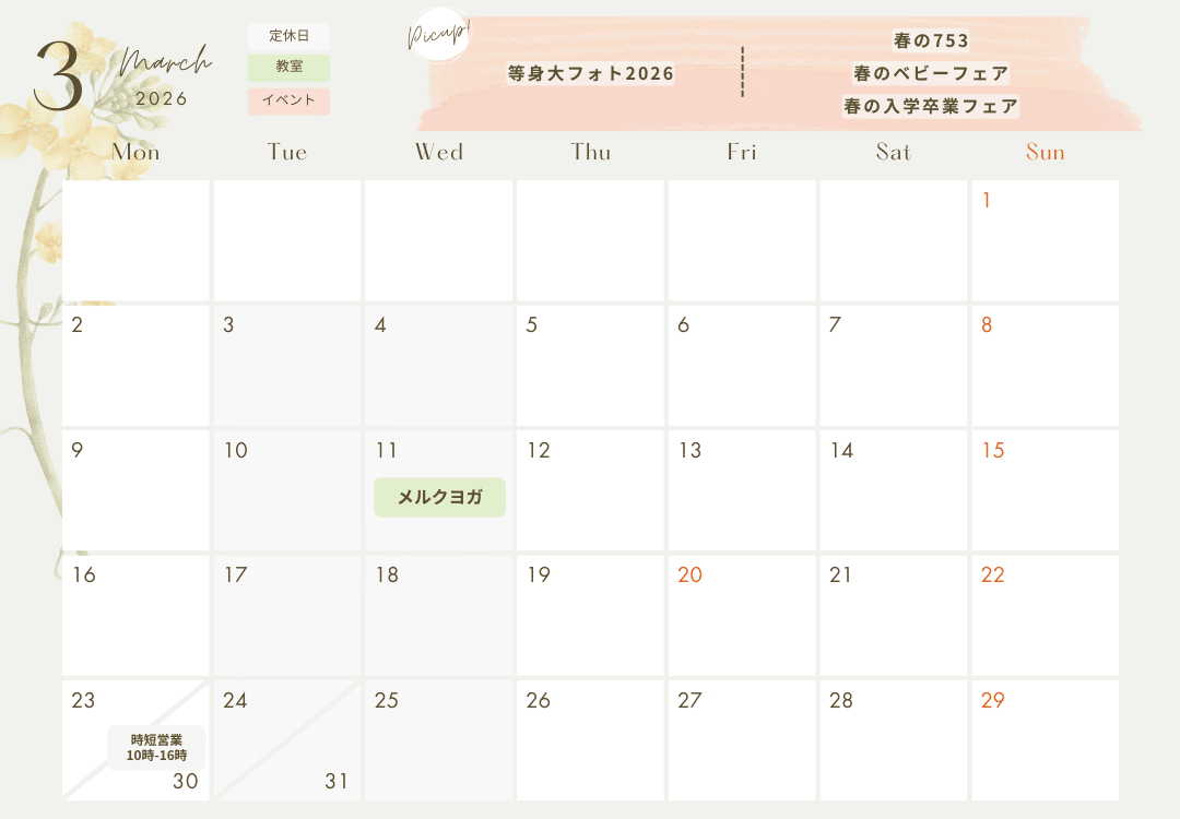 スタッフ一同、3月もみなさんにお会いできるのを楽しみにしています😊